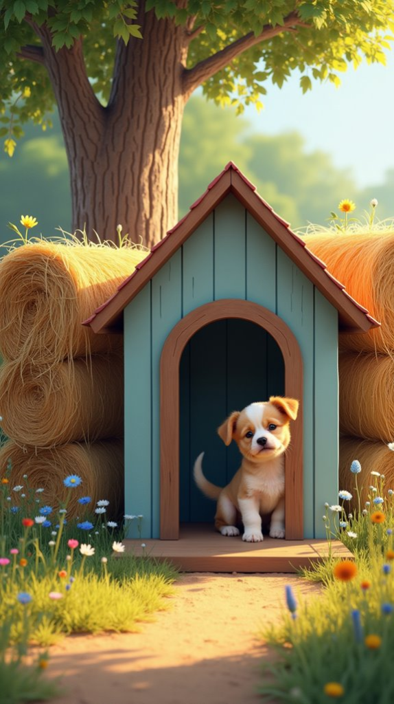 18. Playful Dog House With Hay Bales