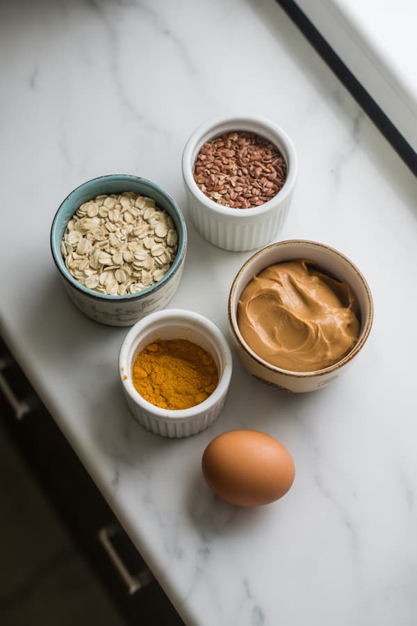 - Combine Dry Ingredients: Mix oats, flaxseed, and turmeric evenly. Golden specks of turmeric should be visible throughout.