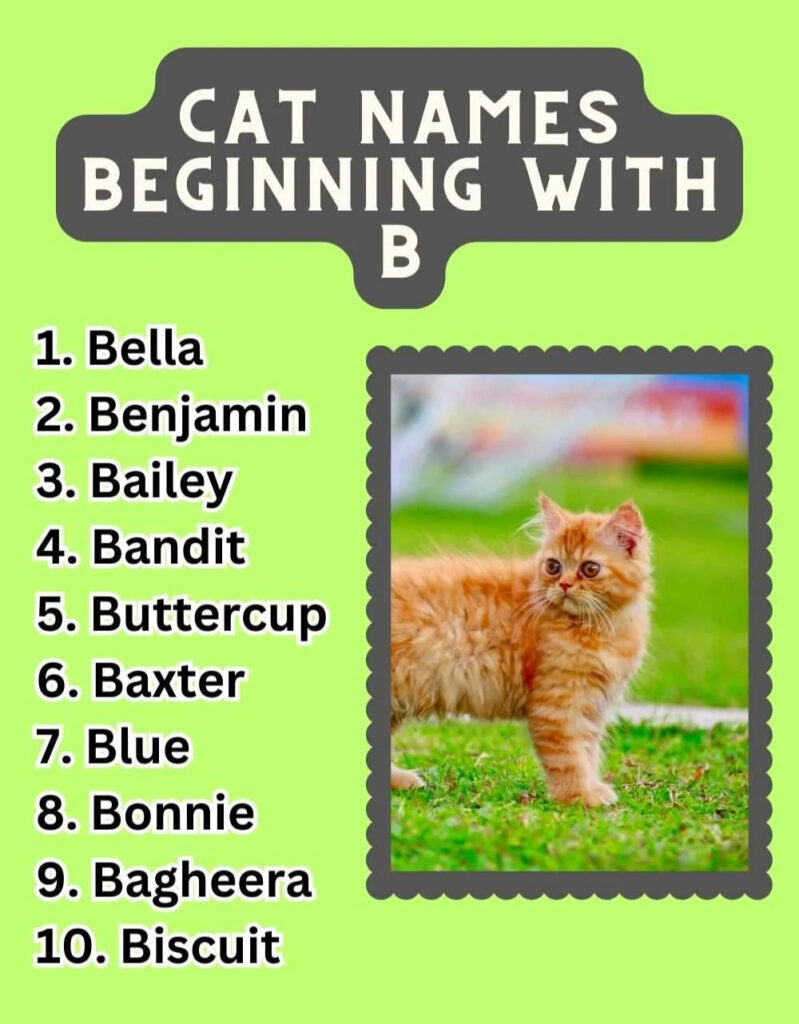 From my experience, the best name is the one that matches your cat’s personality, not just something that sounds cute. I’ve also noticed that cats respond better to short and clear names, especially those with sharp sounds like “B”.