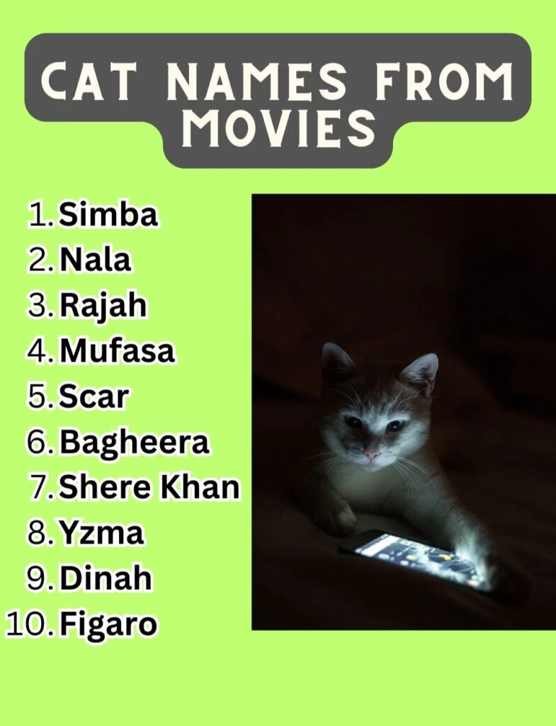 I’ve noticed movies often provide names that fit a cat’s looks or behavior. A regal cat may suit “Mufasa,” while a playful one might be “Loki.” Matching personality makes the name feel natural.