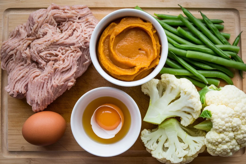 Grab a large bowl and combine the ground chicken, pumpkin, green beans, cauliflower, and egg. Stir everything until it’s evenly mixed. You’re looking for a consistency that’s thick but not too dry. If it seems too wet, a little more pumpkin or cauliflower will help firm it up. I usually use my hands for the final mixing—it’s quick and you can really feel if the texture is right.