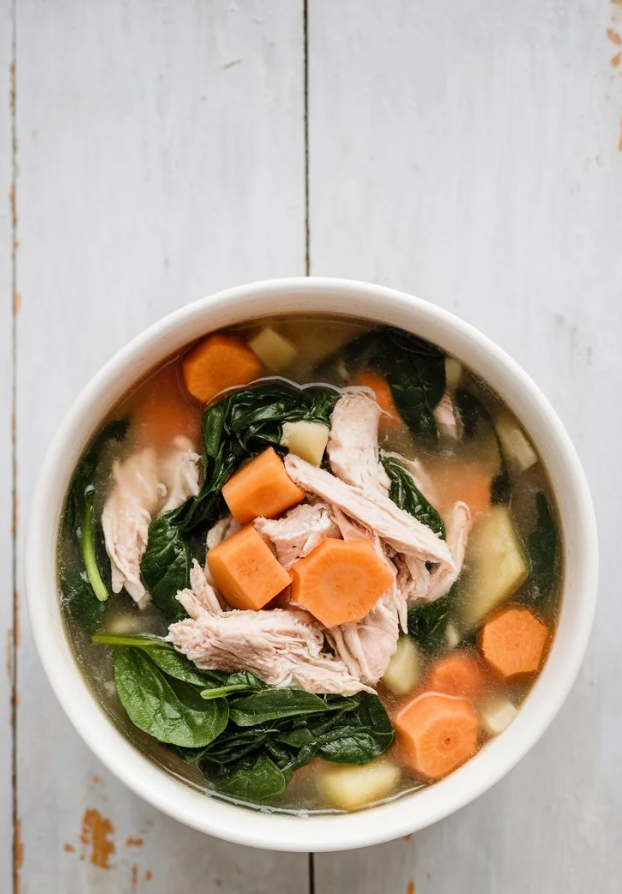 This Chicken & Spinach Immune-Boosting Soup isn’t just tasty—it’s loaded with nutrients that benefit your dog in many ways. Chicken provides lean protein to strengthen muscles and sustain energy. Spinach adds a powerhouse of vitamins and antioxidants to support overall immunity. Carrots and sweet potatoes supply essential nutrients for healthy skin, a shiny coat, and smooth digestion. Turmeric and ginger work as natural anti-inflammatory agents, helping with joints and tummy comfort. Finally, the broth keeps your dog hydrated, which is especially helpful if they don’t drink enough water on their own.