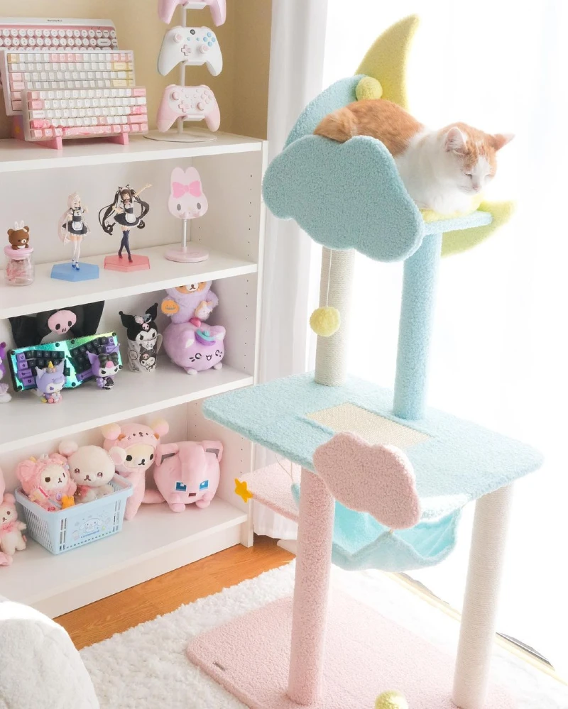 I prefer clean, simple layouts with a mix of shelves, scratching posts, and cozy beds. It keeps the space functional without overwhelming the cat.