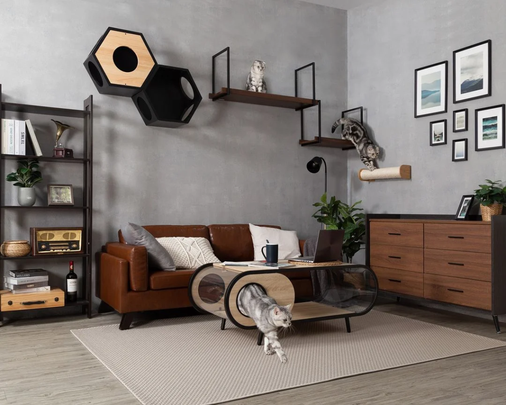 I prefer designs that blend into the home. A bench with hidden cubbies gives both seating and cat hideouts, which is a smart use of space.