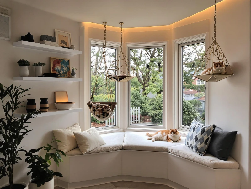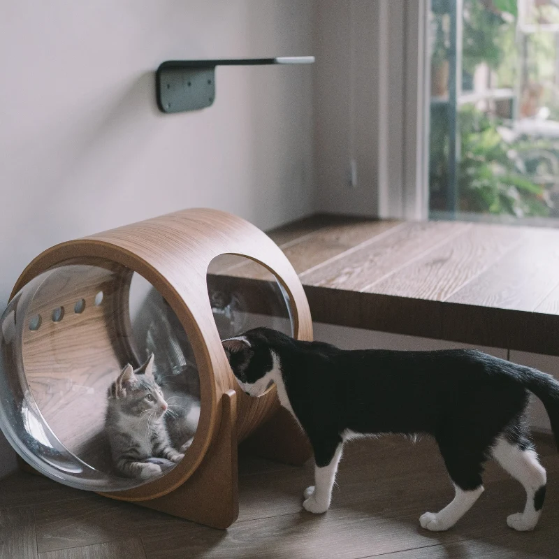 I like adding unique elements like transparent pods near windows. Cats enjoy observing their surroundings while staying comfortable.