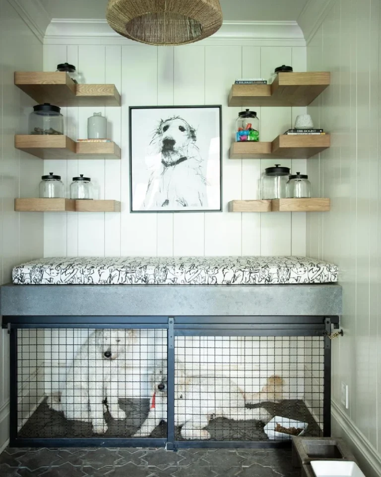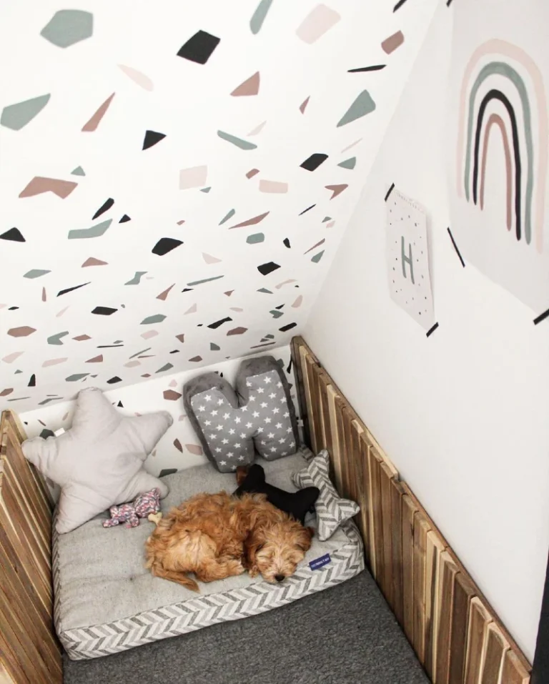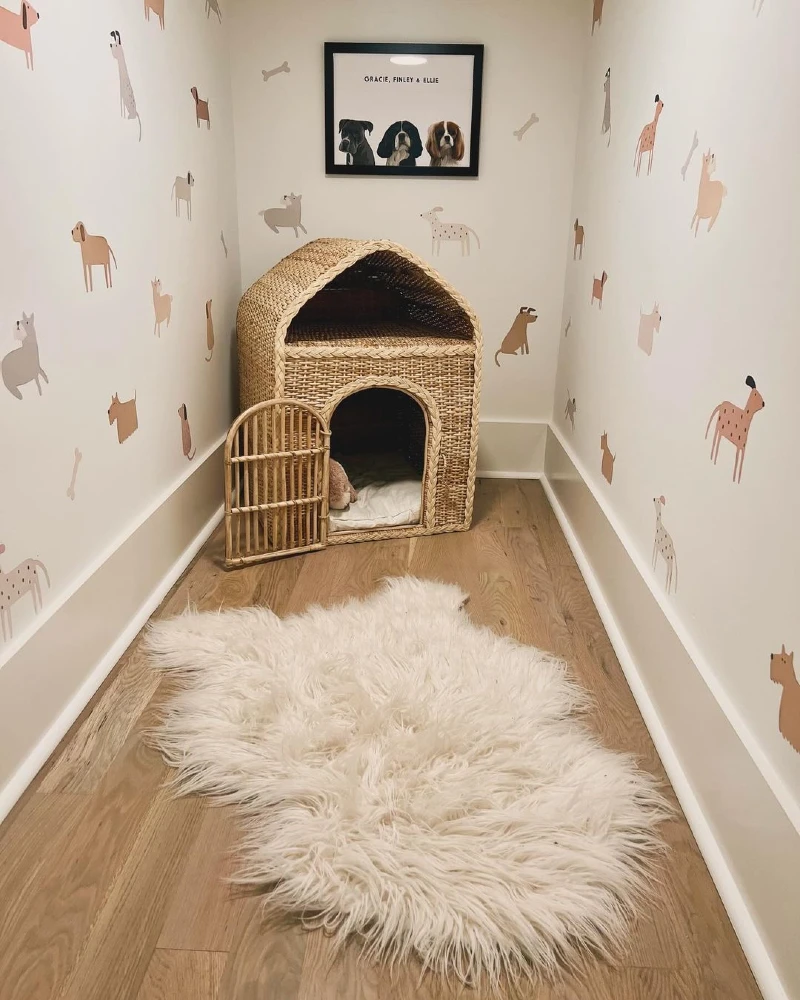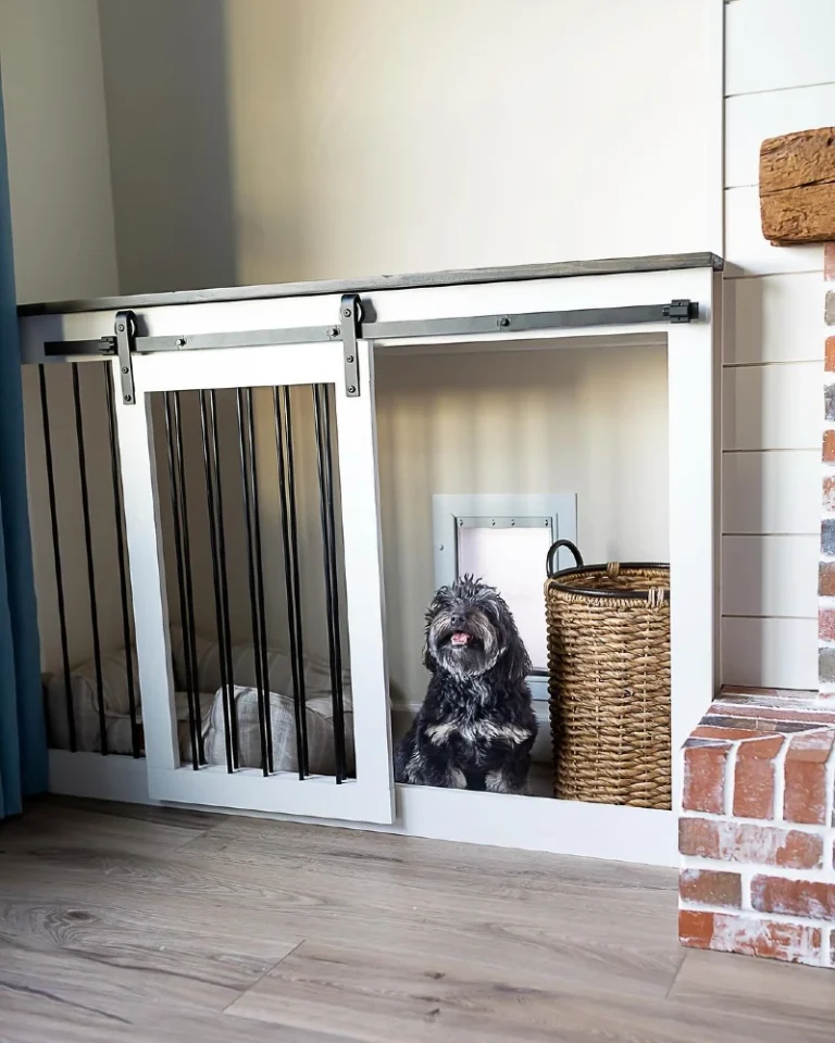 A custom indoor dog house gives structure while still keeping things comfortable.