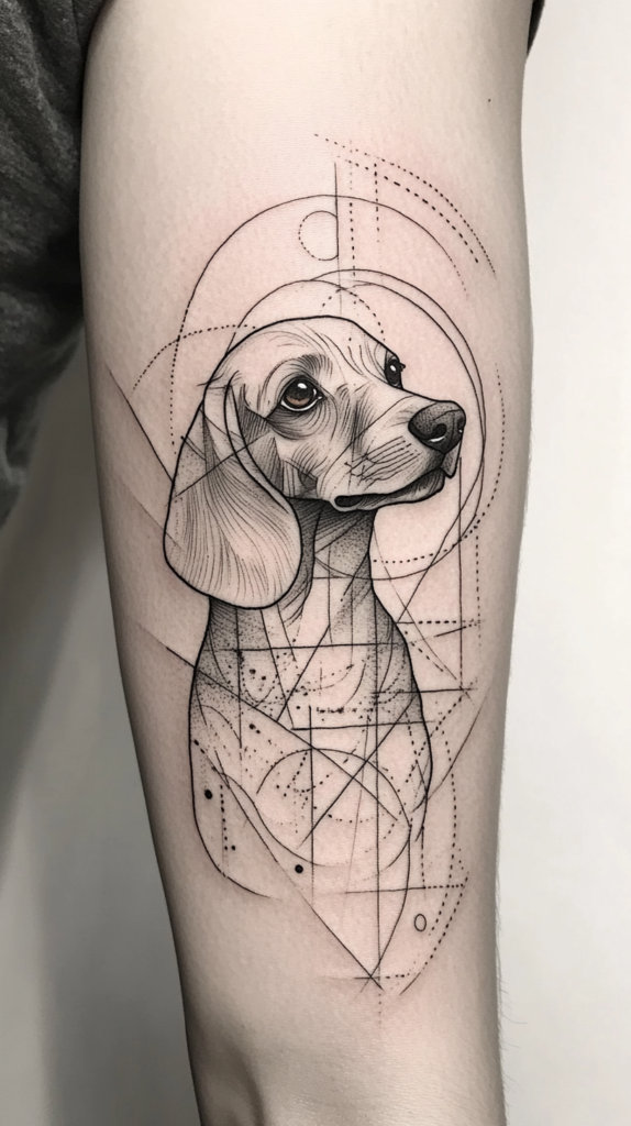 Combine the classic features of a Dachshund with geometric shapes to create a modern and artistic design. Triangles, circles, and lines can be used to form the dog’s shape in a unique way, adding a contemporary twist to the traditional tattoo.