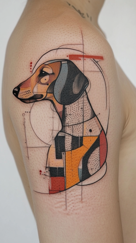 For a more artistic approach, consider an abstract tattoo of a Dachshund. This style uses shapes, colors, and patterns to create a unique representation of the breed, offering a creative and modern take on the traditional tattoo.