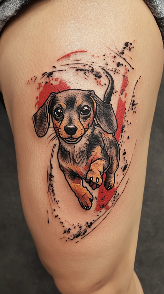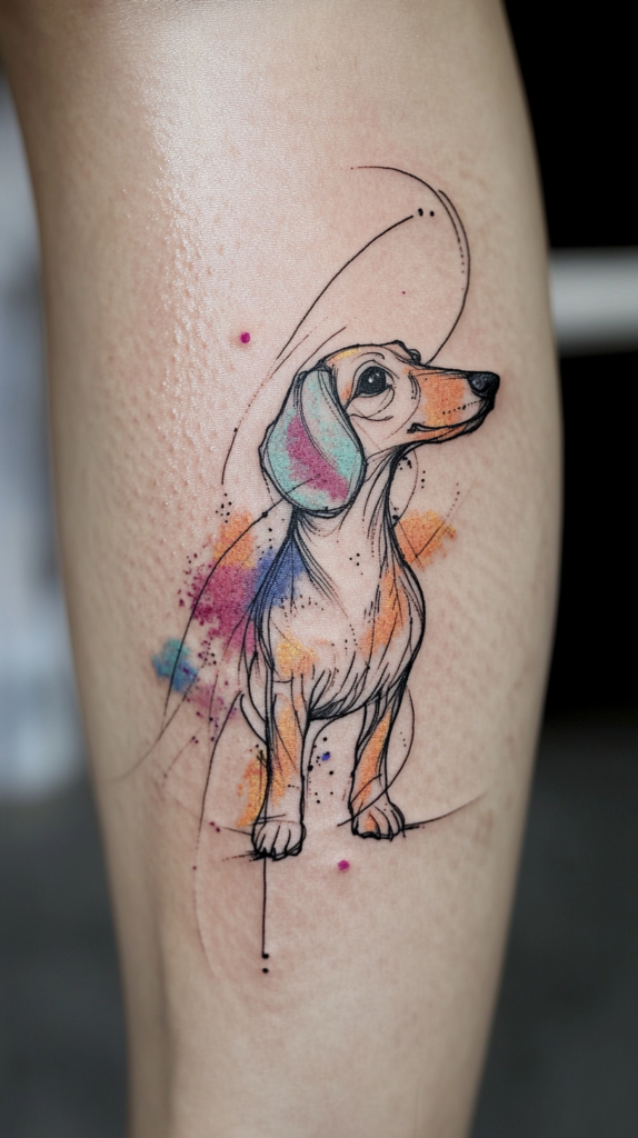 I’ve always loved watercolor tattoos because they capture the fun, energetic personality Dachshunds are famous for.