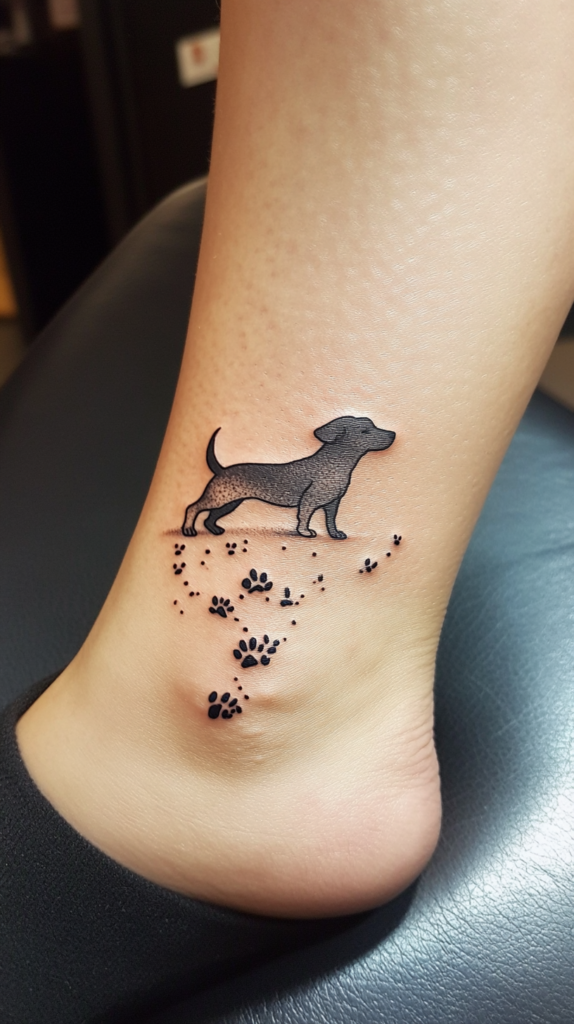 Incorporate paw prints into your Dachshund tattoo to symbolize the journey and bond you share. This design can trail along your arm or leg, adding a playful and personal touch to your tattoo.