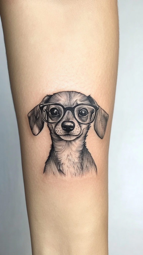 Add a quirky touch to your tattoo by giving your Dachshund a pair of glasses. This fun and playful design reflects the breed’s charming and sometimes silly personality.