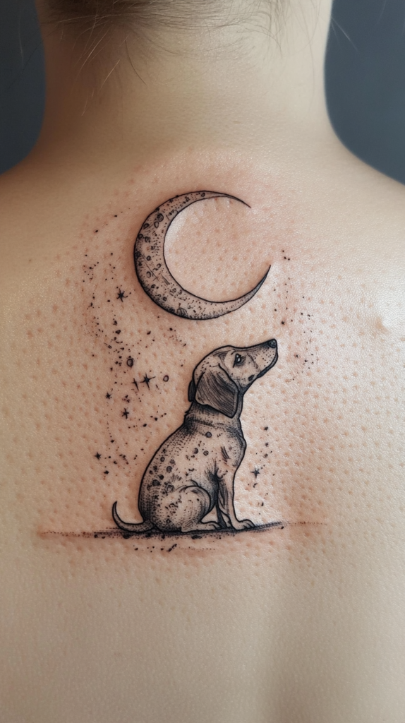 Pair your Dachshund tattoo with a crescent moon to add a mystical and serene element to the design. This combination can symbolize your dog as a loyal companion who watches over you day and night.