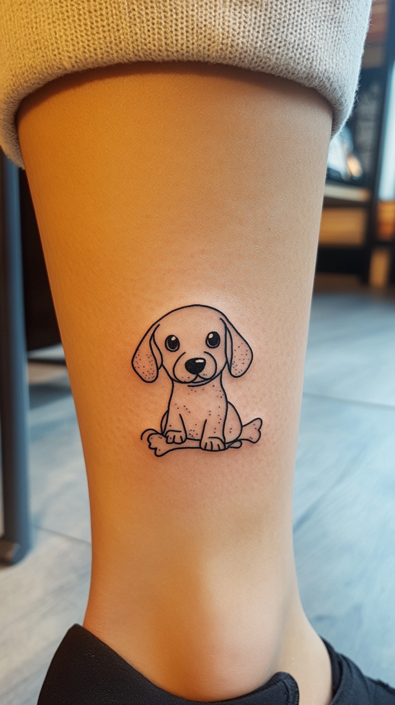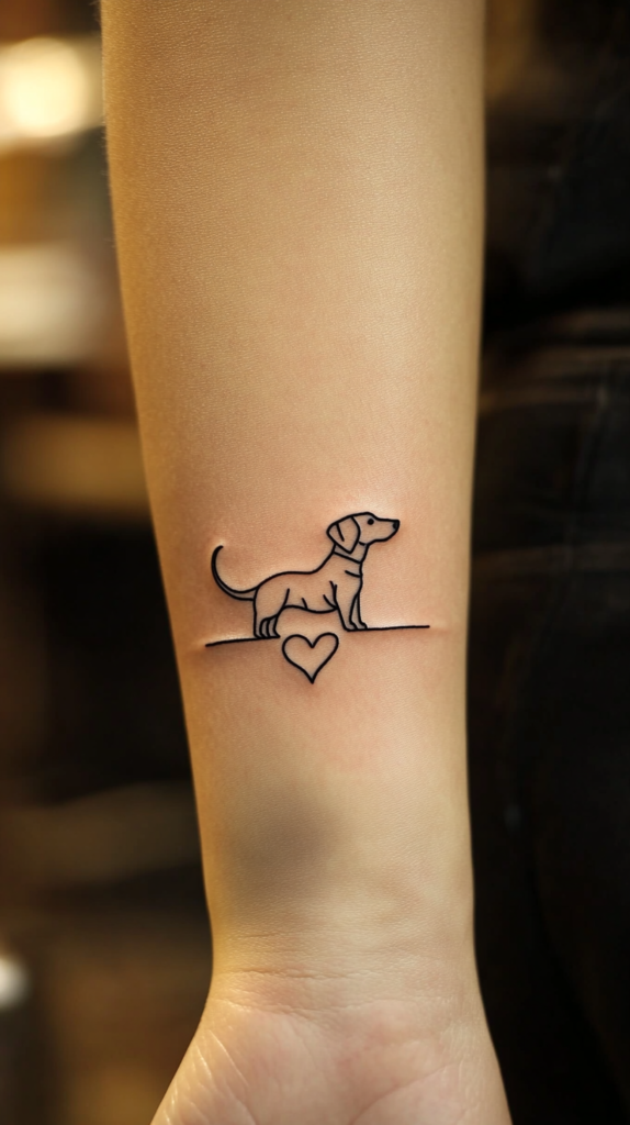 A simple design featuring a Dachshund with a bone is a classic and playful choice. This tattoo can be small and subtle, making it a great option for those who prefer minimalist designs.