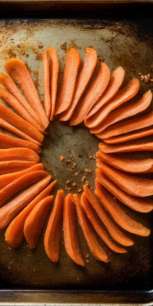 The slow baking removes moisture and turns carrots into crunchy chips. That crunchy texture encourages chewing, which helps scrape away soft plaque buildup.