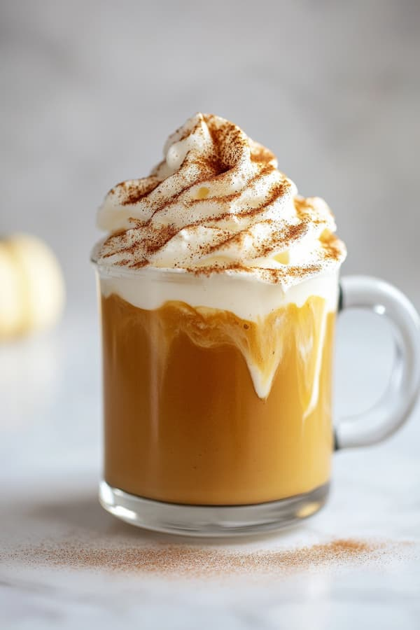I start by mixing 1 cup of oat milk with 1½ tablespoons of pumpkin puree. I prefer room-temperature ingredients because they blend more smoothly and improve texture.