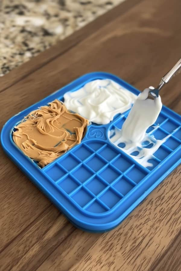 I layer yogurt with applesauce and add a small amount of cinnamon. It’s simple but keeps my dog engaged longer than single ingredients.