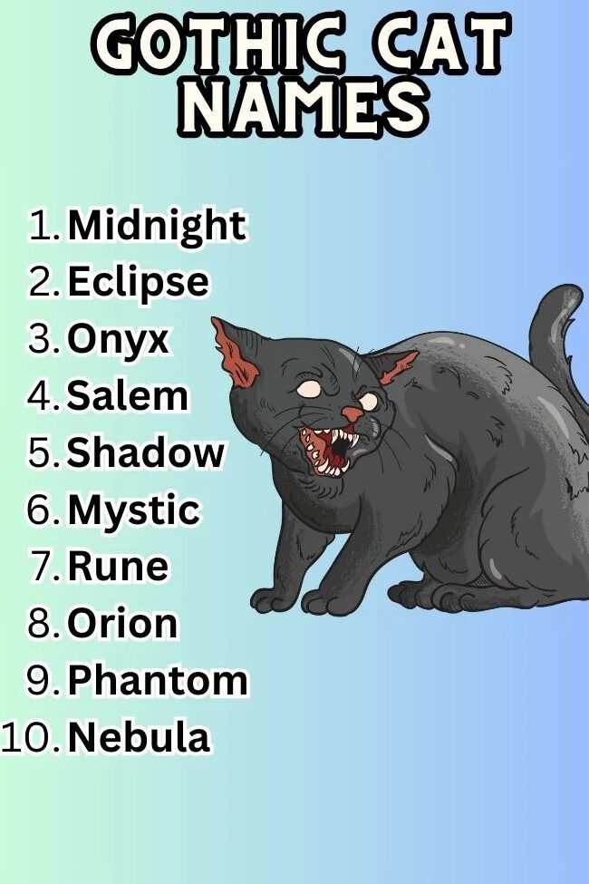 • Gothic cat names reflect mystery, elegance, and strong personality traits