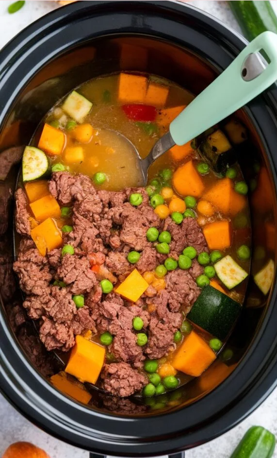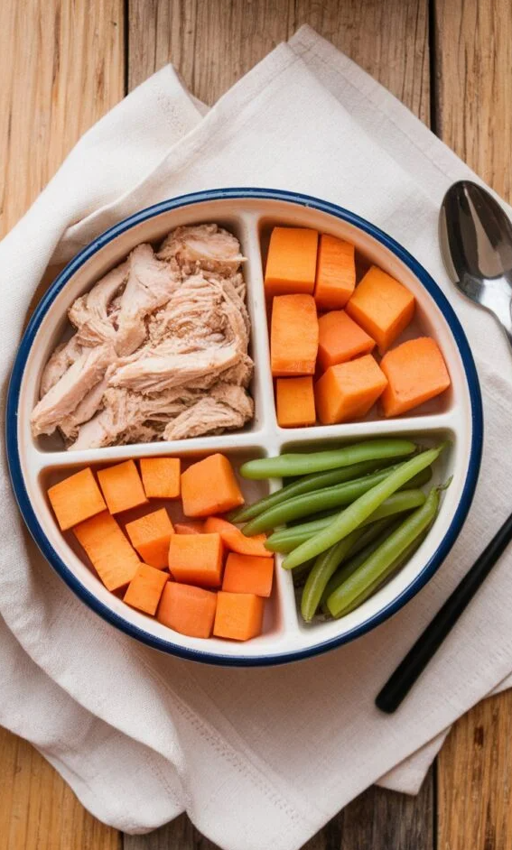 Chicken always wins with dogs, and this recipe keeps it healthy and simple. The slow cooker brings out natural flavor while keeping the nutrients intact. Sweet potatoes and green beans add fiber and vitamins, while chicken gives the protein your pup needs. The best part? It smells great and is gentle on the stomach.