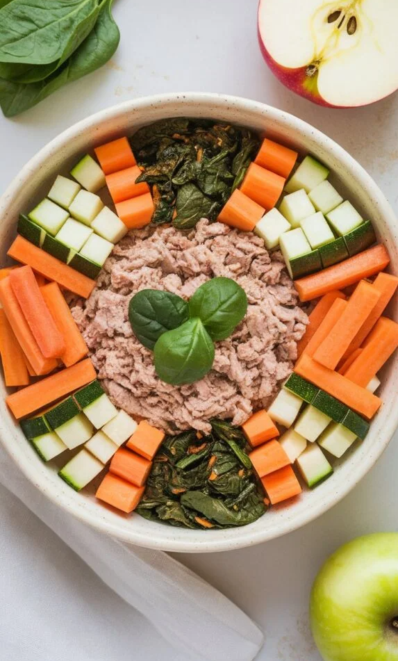 Ground turkey makes a light, protein-rich base, while spinach and carrots add important nutrients. A bit of apple gives the meal a fresh touch of sweetness. Everything cooks together easily, making it a go-to recipe when you want something healthy that still feels special for your dog.