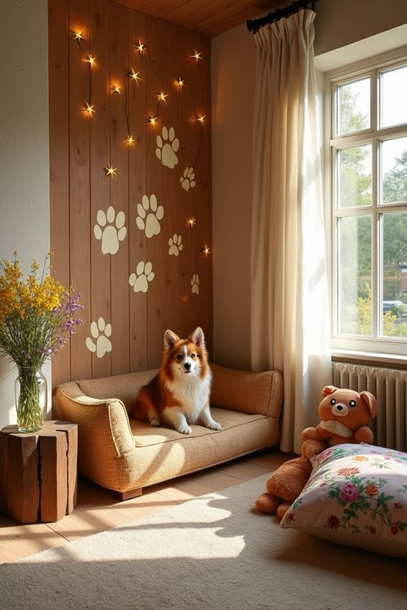 I prefer using shades like light blue, green, or beige because they create a calm environment. Pairing these with soft textures and warm lighting helps dogs settle down faster, especially in a new place.