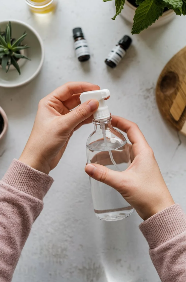 Distilled water forms the base of the spray. It’s clean, neutral, and free from minerals or odors that can come from tap water. This helps the mixture stay fresh and predictable, which matters when you’re using it on your dog regularly.