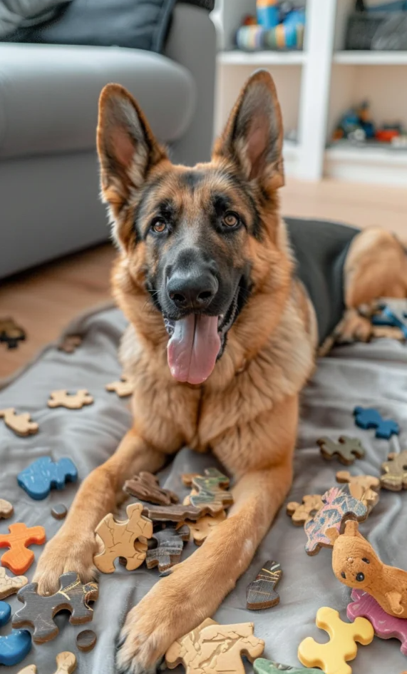 - Mental Stimulation: Keep your German Shepherd’s mind engaged with puzzle toys, obedience training, and interactive games. This explains that mental activity is just as important as physical exercise.