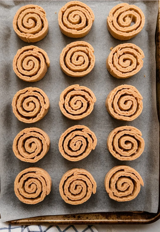Roll the dough evenly so it bakes properly. Spread the peanut butter layer evenly to create the spiral, then roll tightly to hold the shape. Chilling the dough firms it up, making clean slicing possible. Bake until lightly golden and firm, then allow the treats to cool completely so they reach the right crunch.