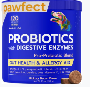 These chews are a favorite among dog owners who want something easy and tasty without compromising quality. They combine probiotics, prebiotics, pumpkin, and digestive enzymes — all in a single bite. That combination covers multiple digestive needs at once.