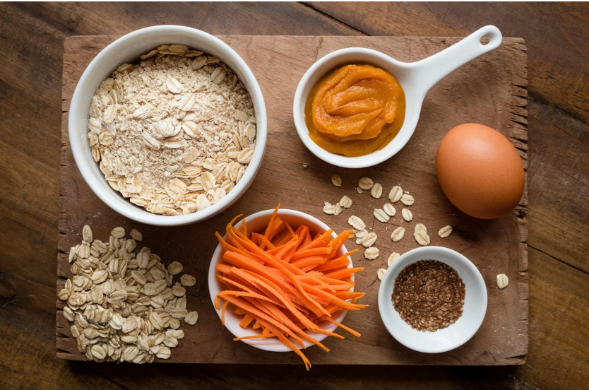 Each ingredient brings a specific benefit to the recipe. Oat flour is mild and fiber-rich, pumpkin supports digestive balance, and carrots supply important vitamins. Eggs lend structure and protein, while flaxseed boosts the recipe with healthy fats and added fiber.
