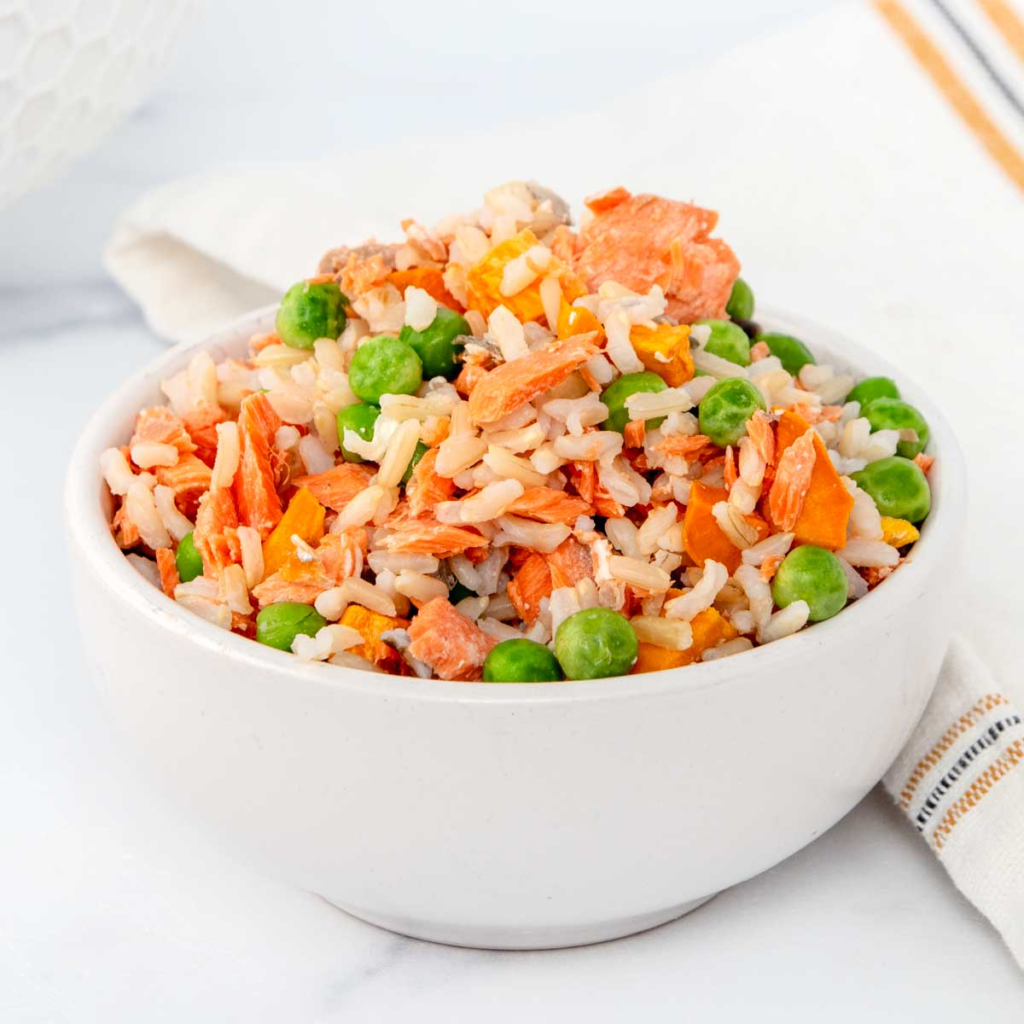 I’ve discovered that making homemade salmon dog food is one of the best ways to provide my dog with a healthy, balanced, and tasty meal. This recipe combines protein-rich salmon with fiber-packed rice, sweet potato, and nutrient-rich peas.