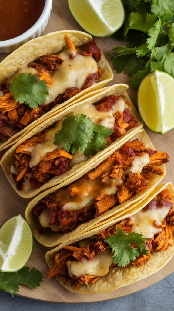 What makes these tacos so addictive? It’s the perfect balance of textures and flavors. You’ve got crispy tortillas, gooey, melty vegan cheese, and a savory filling soaked in a smoky, flavorful broth.